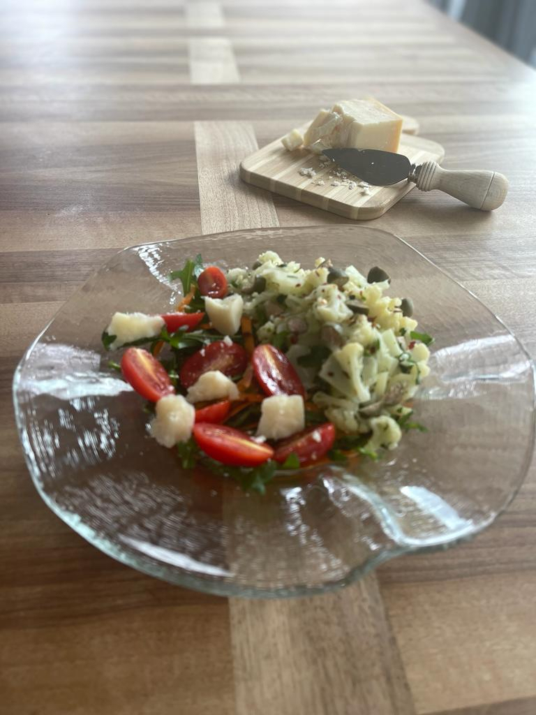 - Den Blumenkohl möglichst heiss mit der Petersilie und der Butter vermischen, so dass sie schmilzt.